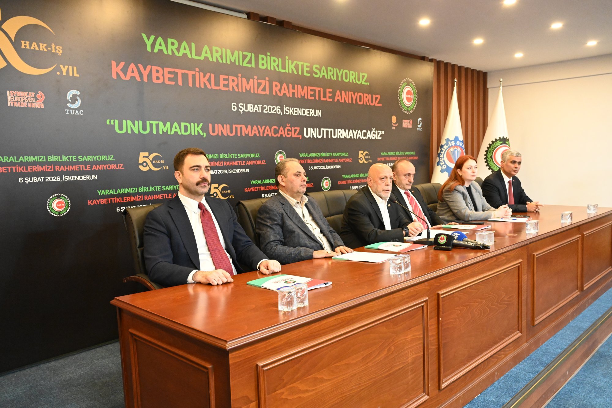 Hak-İş Genel Başkanı Mahmut Arslan, 6 Şubat 2023 tarihinde gerçekleşen Kahramanmaraş ve Hatay merkezli asrın felaketinde deprem bölgesine yönelik ilk harekete geçen kurumlardan birinin de HAK-İŞ Konfederasyonu olduğunu ifade etti. Arslan, asrın felaketinde hayatını kaybeden 53 bini aşkın vatandaşla birlikte 357 HAK-İŞ mensubunun da toprağa verildiğini hatırlatarak, “Şehitlerimizi rahmetle, minnetle anıyoruz. Milletimizin başı sağ olsun” dedi.